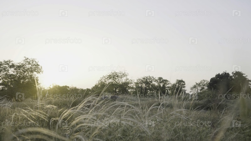Прекрасный закат солнца над летним лугом с золотыми ушами