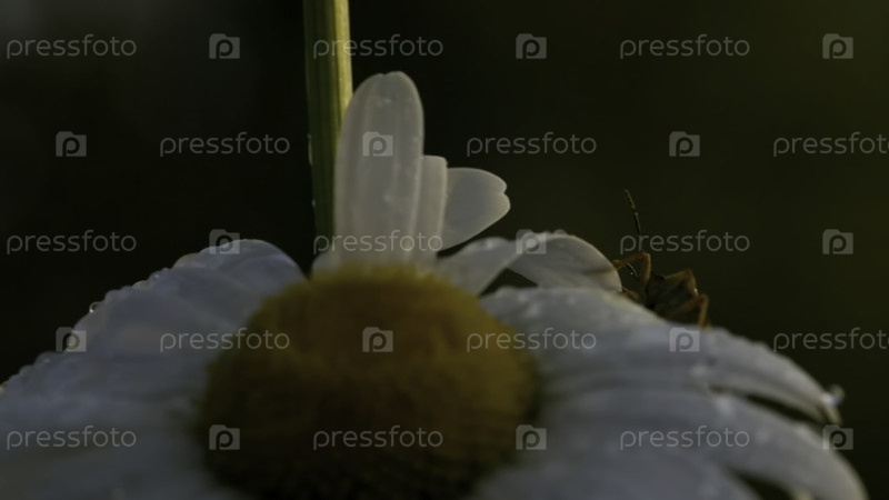 жук на цвете с каплями воды. творческий. покрыть ползущего насекомого мягкими белыми лепестками цветка