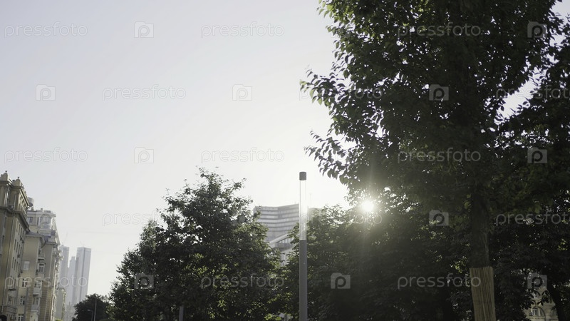Ниже представлен вид на зеленые летние деревья с солнечным светом, сияющим через ветви со зелёными листьями