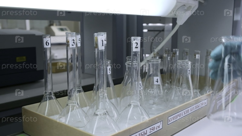 Химические эксперименты. Различные стеклянные трубки, в которые вмешиваются растворы разных цветов. Высококачественный персонал FullHD