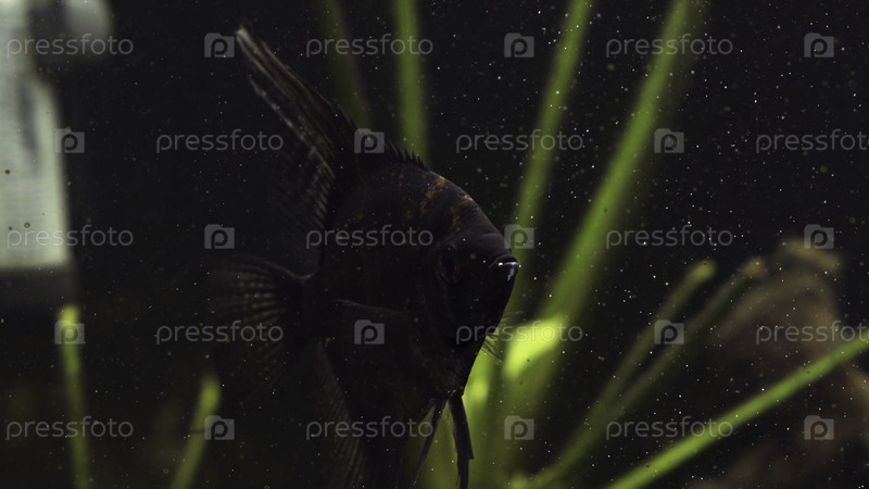 Красивый аквариум натюрморта с плавающей вишневой рыбой. Тропическая поверхность пресноводного резервуара на светлом фоне