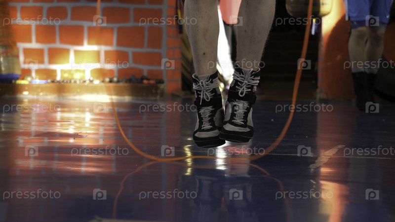 Мужчина прыгает на веревку в спортзале