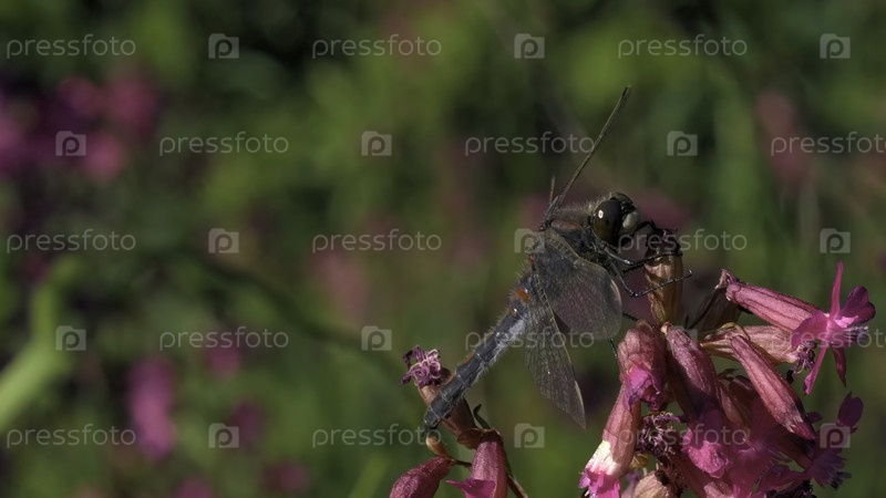Цветящие розовые и фиолетовые луга и воробьи на клумбе в саду.Креативно.Закрыть насекомое на мягком лепестке цветка