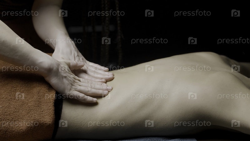 Нежные руки, смазанные массажным кремом на спине под полотенцами