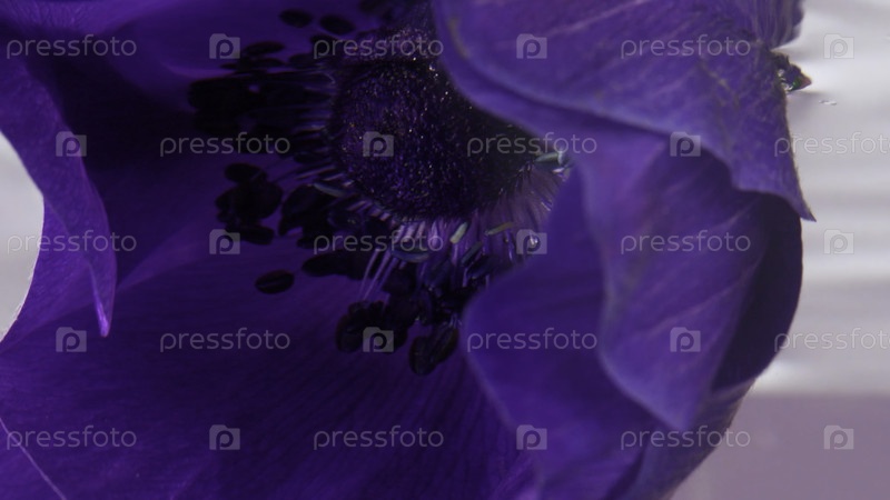 Ярко-фиолетовый цветок. резервные кадры. Большой бутон тонкого цвета с большими лепестками падает в прозрачную воду и переворачивается в воде
