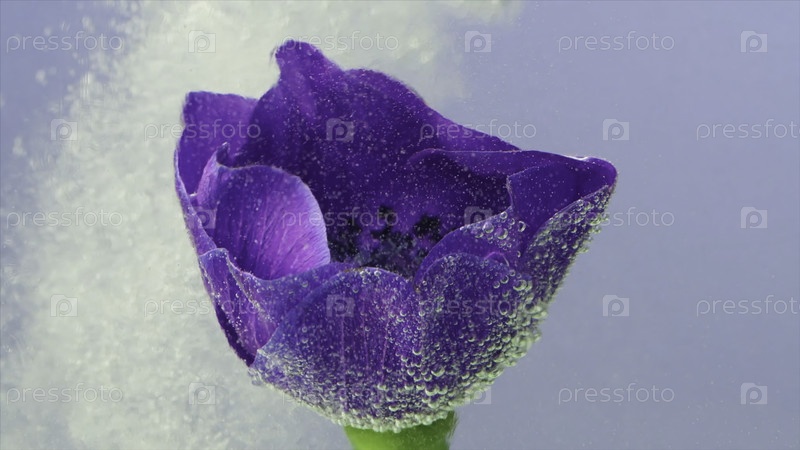 Красивый цветок в воде с чернилами. Резервные кадры. Плеск чернил со ярким цветком в воде. Чернила мягко обворачивают зародыш под водой