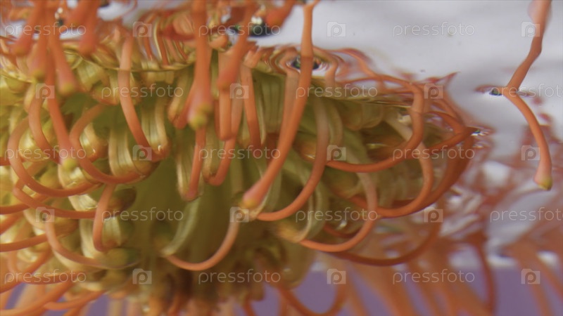 Красивый тропический цветок под водой. резервные кадры. красочный яркий цветок со штаммами в воде. красивый цветок в чистой воде на изолированном фоне