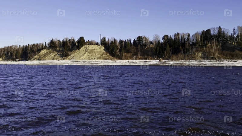 пейзаж с рекой. клип. весенняя замороженная река с видом на замерзшие леса и траву и яркое утреннее небо. высококачественный 4k кадры