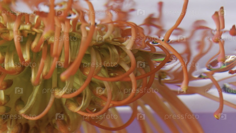Оранжевый цветок. резервные кадры. яркий цветок погружается в воду, которая вращается с одной стороны на другую