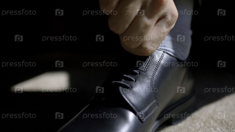 Мужчина идет на прогулку. давай. новые блестящие мужские ботинки, которые привязаны мужчиной. высококачественный 4k кадры