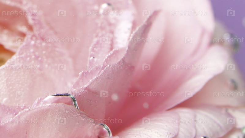 Красивые лепестки роз в воде. резервные кадры. яркий цветок, который имеет много пузырей в воде