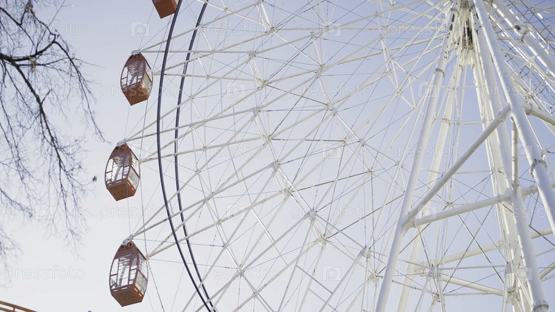 Колесо обозрения против голубого неба. вперед. развлекательная концепция, белая великая аттракцион