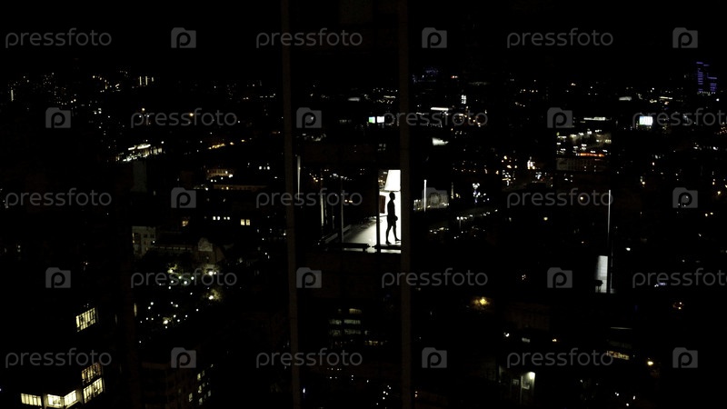 Вид на современный город ночью. Резервные кадры. Светящийся ночной город с современными зданиями и небоскребами. Ночной пейзаж современного города со мигающими огнями