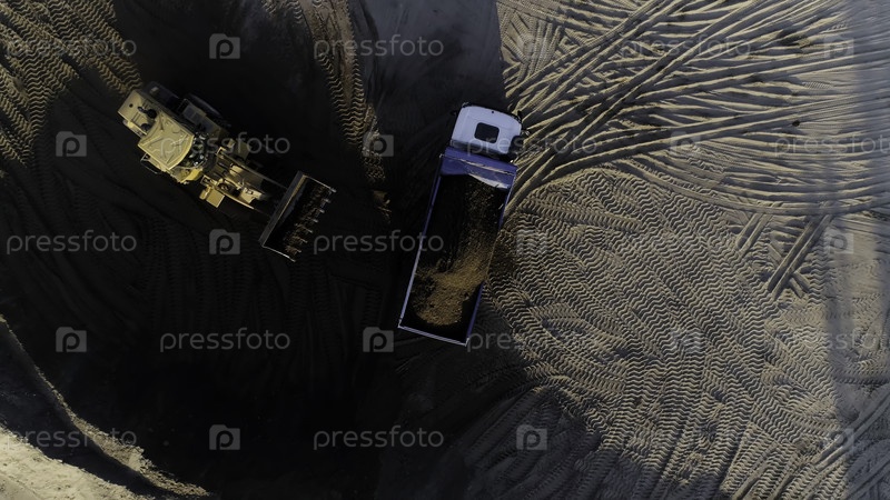 Строительный процесс.Сцена.Большие машины, которые содержат цемент и которые удаляются с высоты, загружают груз в пустую зону и разгружают его для строительства.Высококачественный 4k-фильм