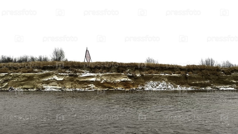 пейзаж с рекой. клип. весенняя замороженная река с видом на замерзшие леса и траву и яркое утреннее небо. высококачественный 4k кадры