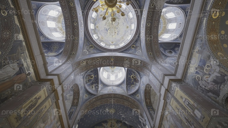 Вид снизу на красивую арку церкви. Продолжайте. Красивые своды и купола внутри церкви. Картины прекрасного храма или православной церкви