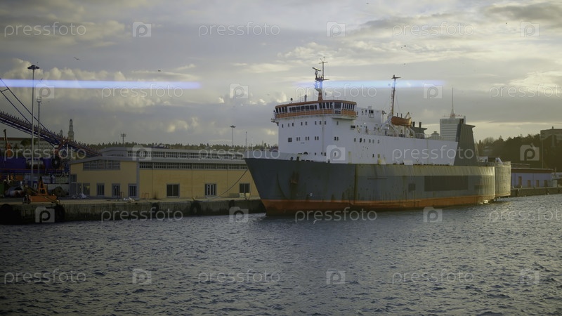 Концепция грузовых перевозок, большое судно на пирсе
