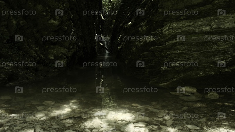 Красивый вид между двумя интересными каменными холмами.Креативный.Самая чистая вода в горном озере рядом с большими серыми камнями.Высококачественная запись 4k