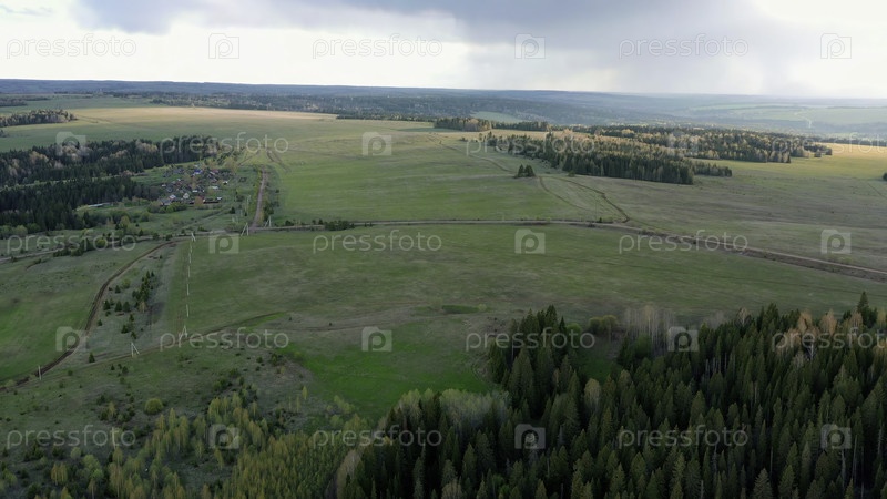 Спокойный живописный пейзаж.Клип.Поля с высокими красочными домами, травой и небольшими жилыми домами и дорогами.Высококачественная запись 4k