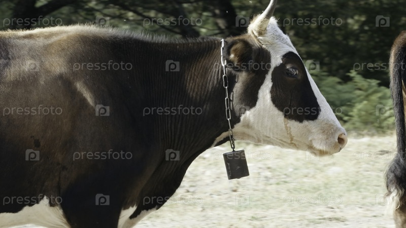Фермерские животные.Креативность.Коров разных цветов стоят рядом друг с другом на фоне леса