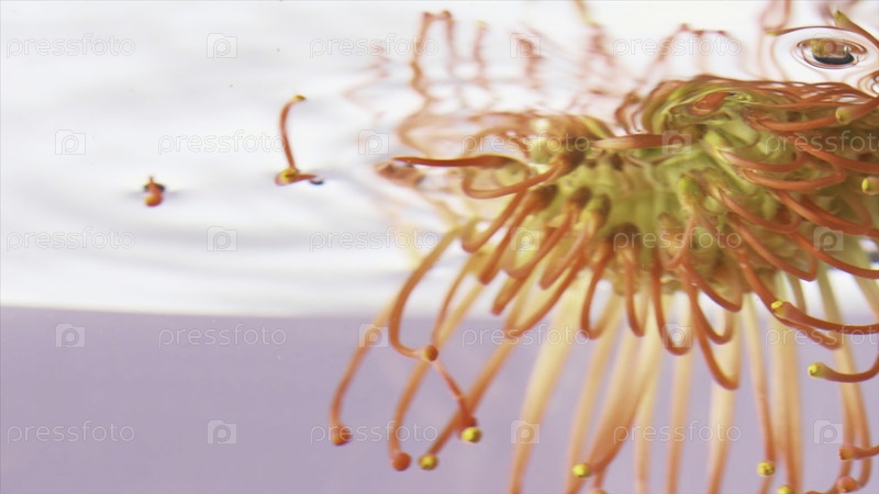 Красивый яркий цветок в воде. резервные кадры. красивые бутоны под водой на изолированном фоне. цветок в чистой воде с отражением