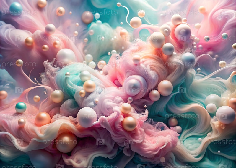 Абстрактный, мечтательный акварельный фон с волнами, полосами и жидкими потоками розового, синего и жемчуга