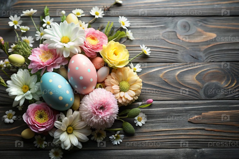 Красивый фон с пасхальными яйцами и весенними цветами