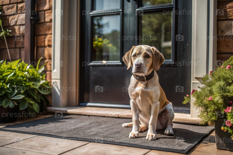 Щенок терпеливо сидит у входной двери, с нетерпением ждет своего хозяина и гуляет вместе с ним