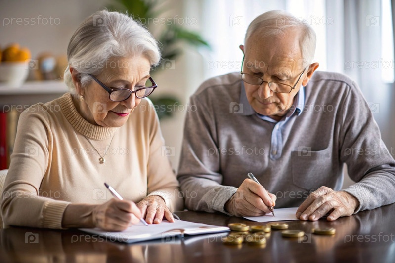 Пенсия. Экономия денег. Сбережения. Пожилая пара рассчитывает свои сбережения. Финансовая грамотность