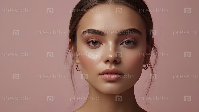Красивый портрет натуральной девушки на нейтральном розовом фоне