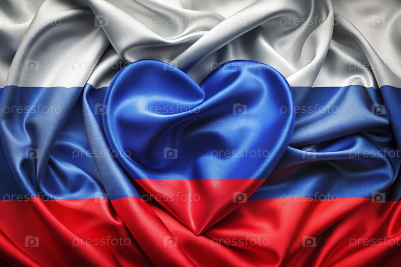 Россия. Москва. Национальный флаг Российской Федерации с сердцем. Русский триколор. День России отмечается 12 июня