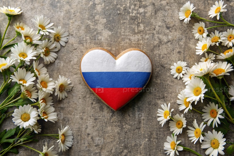 Всероссийский День семьи, любви, верности. Дези, сердце, российский флаг и трехцветная лента. День святого Валентина Петра и Февронии