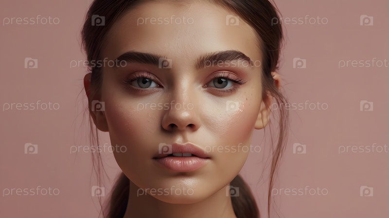 Красивый портрет натуральной девушки на нейтральном розовом фоне
