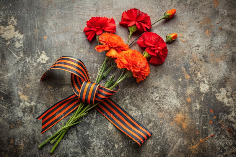 Знамя на 9 мая Красные гвозди и Георгиевская лента на старом фоне Концепция Дня Великой Победы 1941-1945 годов и День защитника Отечества