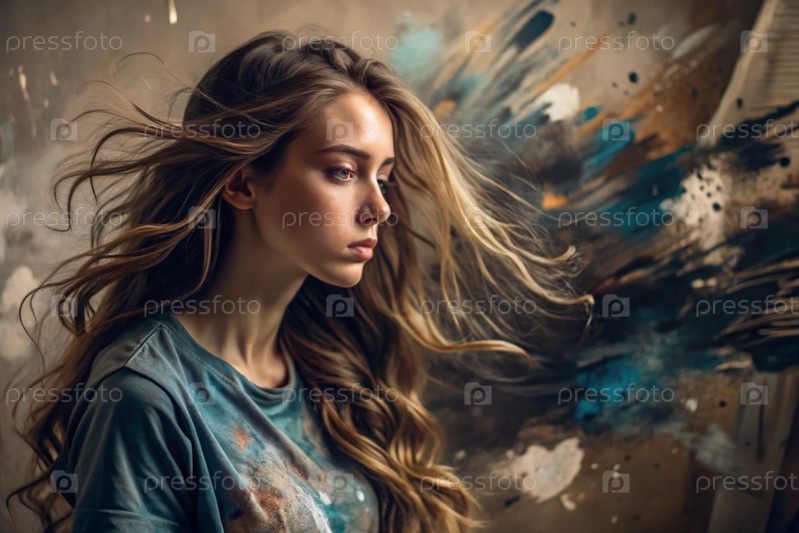 Портрет красивой молодой девушки с продуманным взглядом. волосы развиваются и создают ощущение легкости и естественности