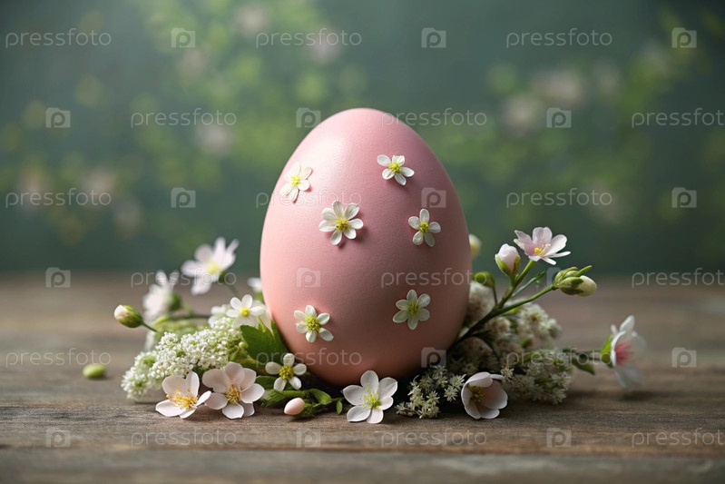 Концепция яркого пасхального праздника минималистична - розовое пасхальное яйцо с нежными белыми вишневыми цветами на тонком розовом фоне