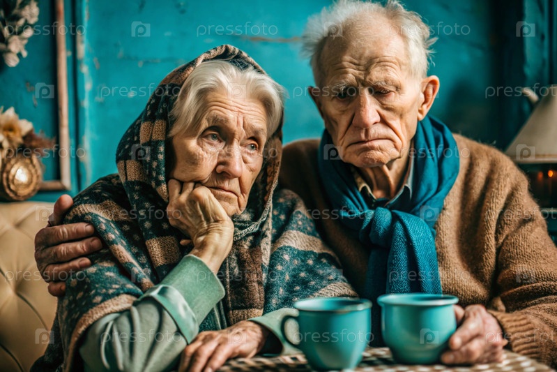 Старая грустная супружеская пара.Старость, пенсия.Проблемы пожилых людей.Дома престарелых