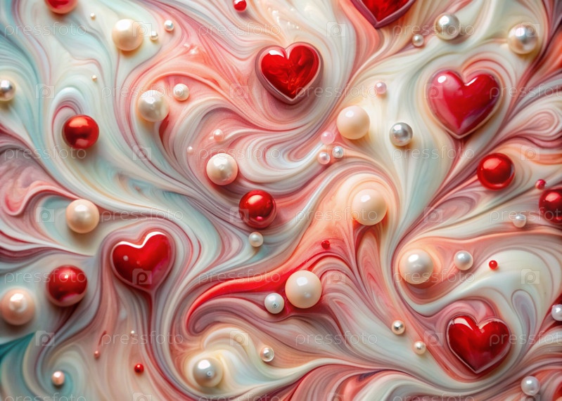 Знак на День святого Валентина. абстрактный фон. стильные мраморные полосы с красными сердцами. эпоксидная смола