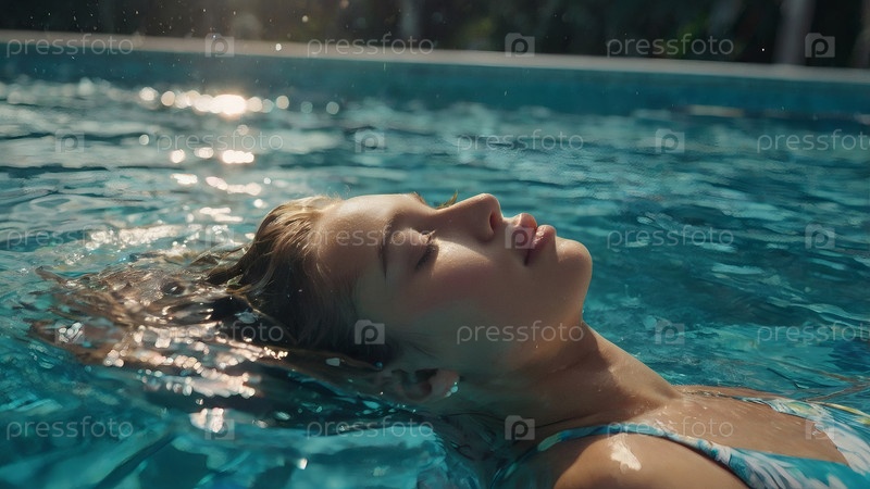 Близко. красивая молодая женщина в бирюзовом бассейне. концепция здорового образа жизни, отдых, расслабление, туризм, косметические спа-процедуры в курорте красота, гордость