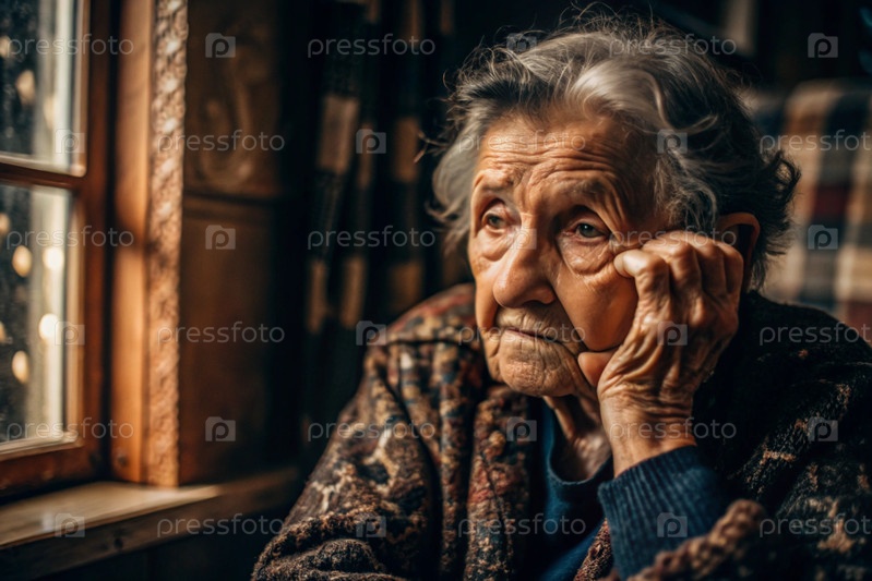 Минимализм.Портрет пожилой женщины, пенсионерки, концепция жизни пожилых людей, здоровье, одиночество и потеря памяти