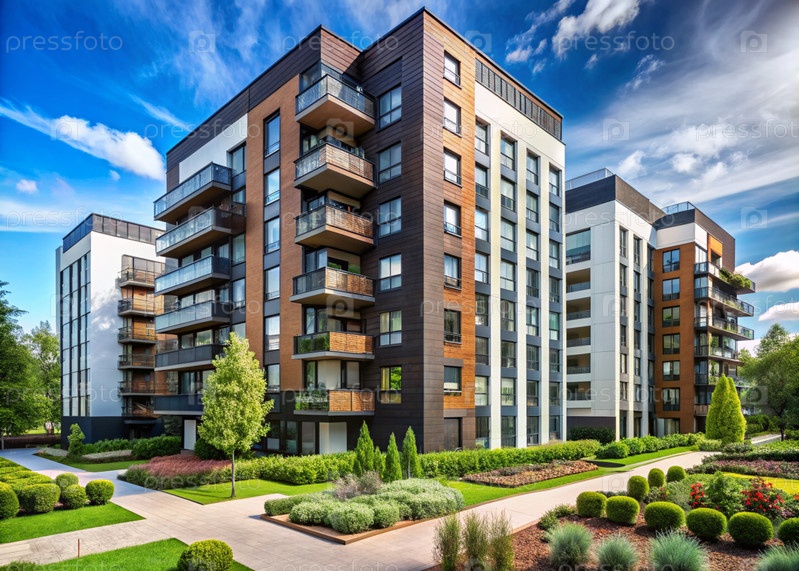 Современные многоэтажные жилые дома. Строительство новых жилых кварталов. Новые здания. Строительный бизнес. Ипотека для нового экологически чистого жилья