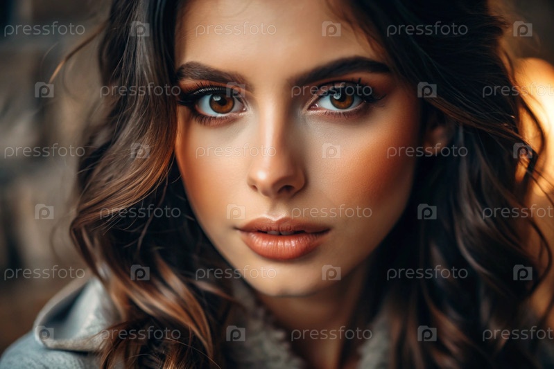 Глубокий эмоциональный портрет. Лицо молодой брюнетки без макияжа, с выразительными глазами, кудрявыми волосами. Естественная женская красота