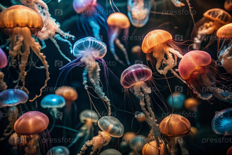 Скуба дайвинг. Дайвинг. Красочные медузы плавают в тропических водах. Медузы в подводном мире диких животных. Наблюдение за океанической фауной