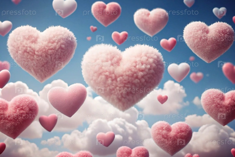Знак на День святого Валентина. абстрактный фон. красивые нежные розовые сердца в облаках
