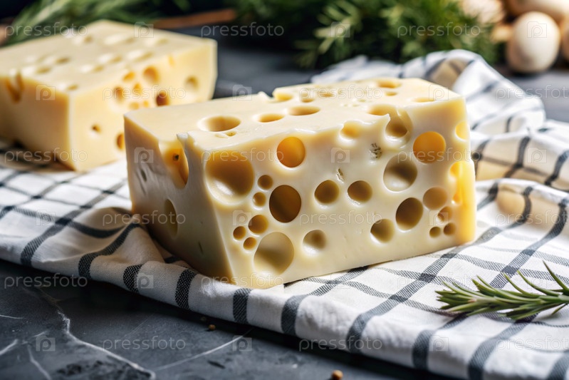 Сыр с Massadam отверстиями, кусок сыра на режущей доске