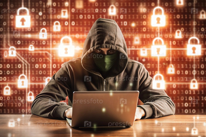 Хакер работает на ноутбуке, цифровые коды на виртуальном фоне. взлом и защита онлайн-данных. цифровые технологии, разработка программного обеспечения