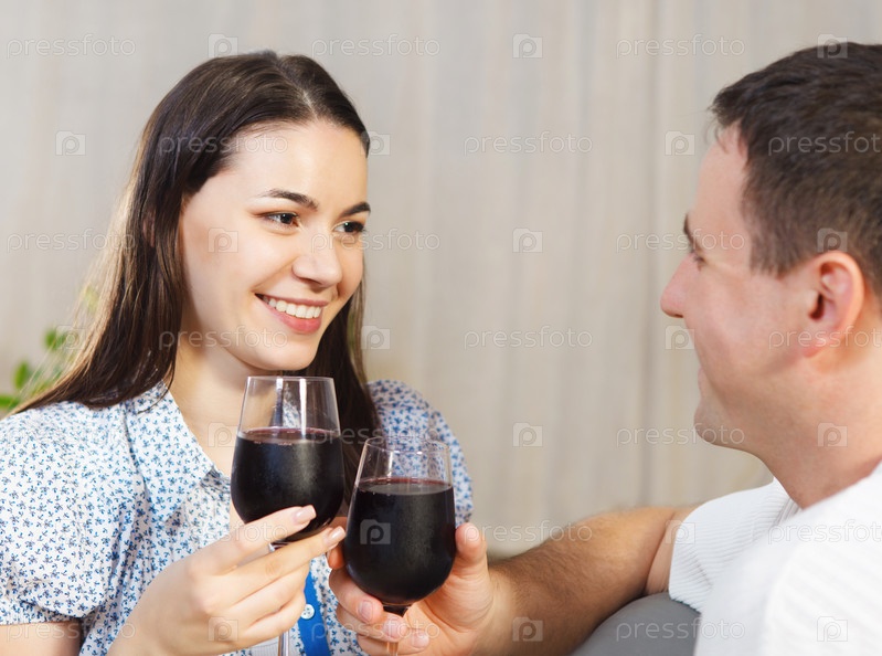 Пара наслаждается красным вином