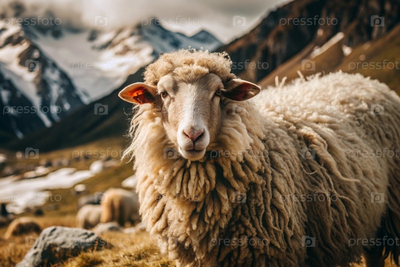 Животноводство. Овцы в альпийских горах. Понятие животноводства и сельской жизни. Овцы пасутся в горах. Сельскохозяйственная промышленность Животные
