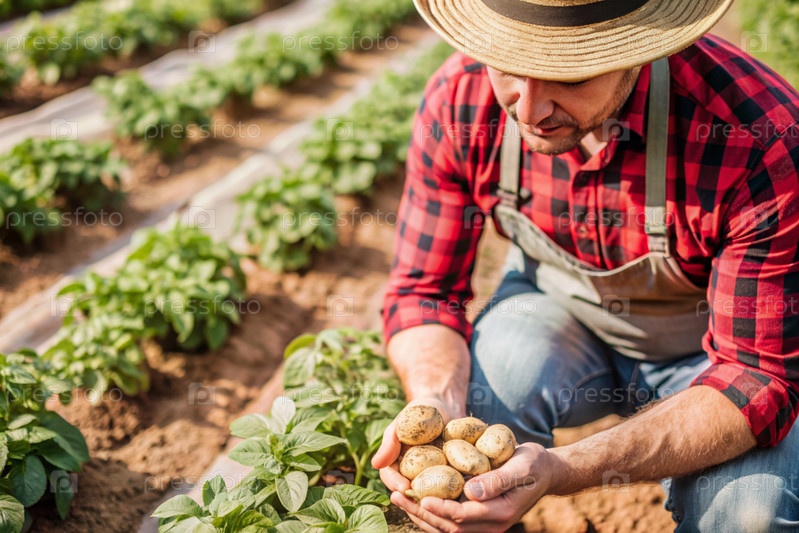 Концепция выращивания продуктов питания. свежие органические картофели в руках фермера. богатый урожай клубней картофеля