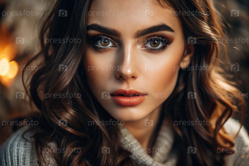 Глубокий эмоциональный портрет. Лицо молодой брюнетки без макияжа, с выразительными глазами, кудрявыми волосами. Естественная женская красота